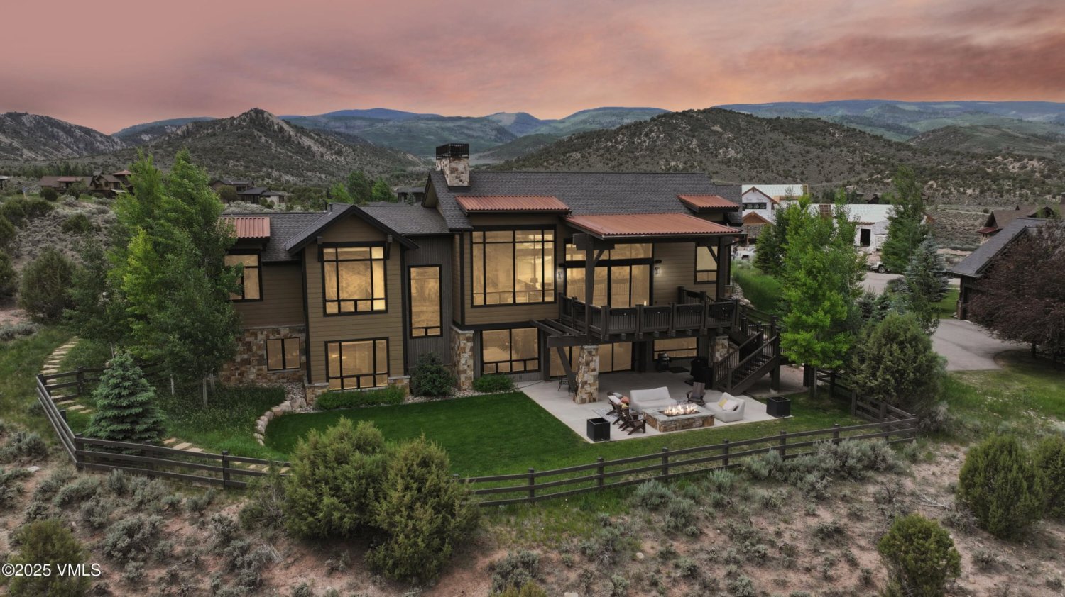 Welcome to 2682 E Haystacker Drive—an exceptional custom home built in 2018, perfectly positioned in the prestigious Highlands at Eagle Ranch. With unobstructed views of Castle Peak, this 4-bedroom, 4.5-bathroom residence offers refined finishes, thoughtful design, and a seamless connection to Colorado's natural beauty. The open-concept main level is filled with natural light and anchored by a floor-to-ceiling stone fireplace. The chef's kitchen features Wolf appliances, a spacious island, and elegant finishes—ideal for both everyday living and entertaining. Dual sliding glass doors extend the living space outdoors: a covered back patio to the north captures breathtaking mountain views, while a charming front patio to the south offers a quiet space to relax. The main-level primary suite is a serene retreat with a spa-like 5-piece bath. A second en-suite guest bedroom adds comfort and flexibility. Additional features include air conditioning, whole house water filtration system, an oversized heated 3-car garage, and generous storage options including a side storage room and attic space. The walkout lower level includes a spacious recreation room with stone fireplace, wet bar with beverage fridge, two additional bedrooms, two full baths, and a dedicated laundry room. Step out to the covered patio with a built-in gas fireplace and enjoy the privacy of the fenced backyard. A rare offering in the Highlands, this Eagle Ranch home blends luxury, comfort, and iconic views—your perfect mountain retreat.