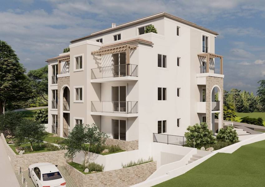 New residential complex 'Torre a cona ' is located in Sutomore, Bar. 'Torre a cona ' is located on a plot of 1,170 m2, directly on the main highway and is intended for tourist and residential purposes. It consists of a garage on the basement level and four residential floors. The total number of residential units is 12, of which 8 are one-bedroom apartments and 4 are studios.There are two apartment on each floor. One-brdoom apartments consists of a living room, a hallway, a kitchen, a bedroom and a bathroom.
