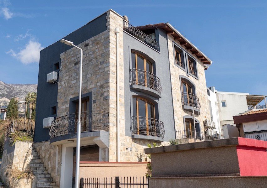 This beautiful 3 level property is located in the village Becici on Budva Riviera.The house offers 337 m2 of living space plus 60 m2 terraces.