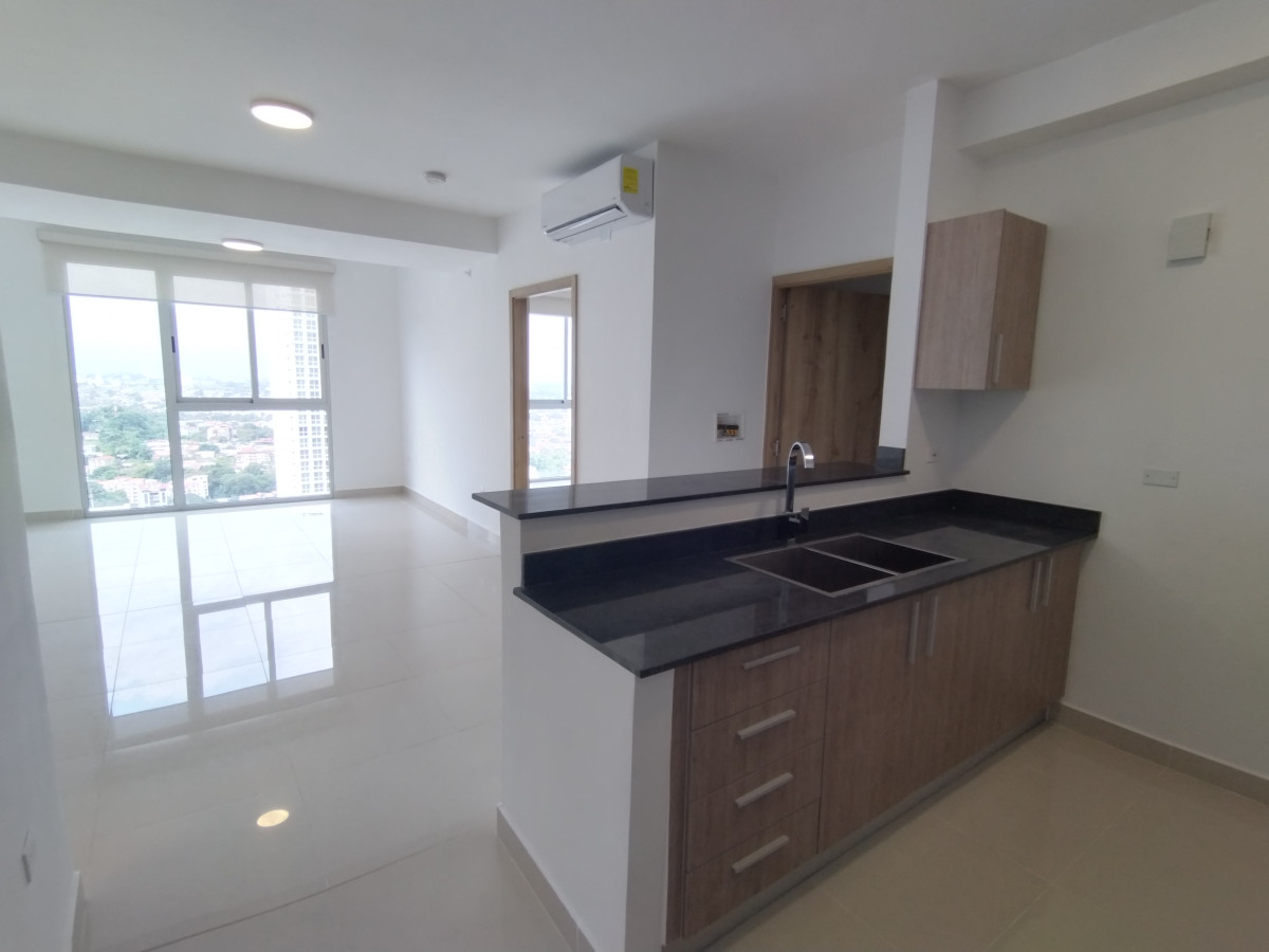 New apartment located in Hato Pintado in the PH Bella Veduta in the city center on a cul-de-sac, a few meters from 12 de Octubre Street, the Metro station, and numerous businesses such as Do It Center, Banco General, Arrocha, Smart Fit, and Supermercado El Rey. The project features visitor parking, a luxurious lobby, a gym, a party room, a children's play area, a pet park, and a beautiful pool with city views. The apartment features an open kitchen, living/dining room, laundry room, two bedrooms, two full bathrooms, lamps, roller shades, appliances, Panasonic inverter air conditioners, and one parking space on level E300 - No. 12. It is ready for immediate occupancy with its electricity installed.Features