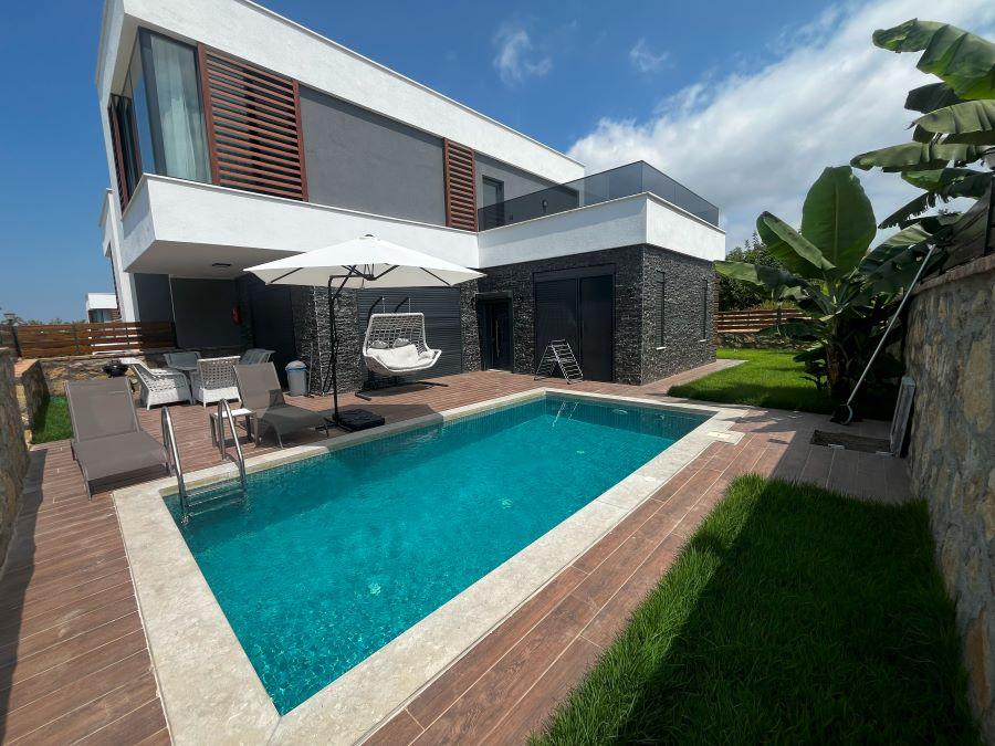 This luxurious furnished 3+1 villa is located in the peaceful and green area of Incekum, Alanya — an ideal choice for both comfortable living and a high-potential investment.The villa offers 155 m² of indoor living space and sits on a 250 m² land plot. It comes fully furnished with high-quality furniture and is ready to move in. The property features 4 bathrooms, a private swimming pool, and a beautifully landscaped garden with spacious outdoor areas for relaxation.