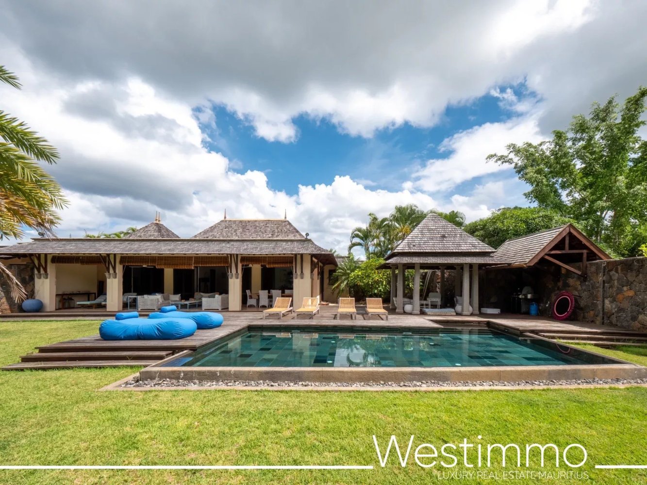 Located in the prestigious secure estate of Tamarina, in the west of Mauritius, this 491 m² villa boasts clean lines on a wooded 3,255 m² plot. Upon entering, the eye is drawn to the generous volumes, the meticulous finishes, and the large openings that let in natural light. The living room, extended by a terrace opening onto the pool, becomes a true living space where interior and exterior blend seamlessly. The surrounding vegetation provides shade and coolness, while birdsong accompanies moments of relaxation. The four en-suite bedrooms, each with their own atmosphere, offer privacy, comfort, and tranquility to their occupants. This exclusive residence is designed for a harmonious lifestyle, combining nature, refinement, and discretion.