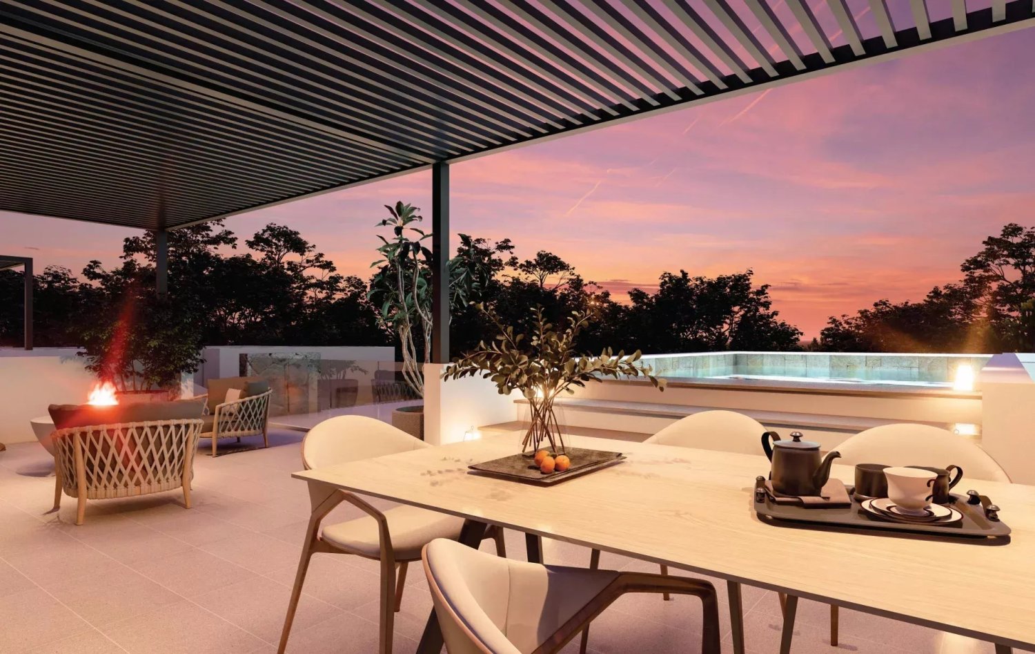 Located on the top floor of a contemporary building, this property stands out with its total surface area of 1,800 sq ft, complemented by a 800 sq ft private rooftop terrace with a swimming pool for exclusive use. The property forms a unique living space, where every detail has been designed to combine comfort, functionality, and rental appeal. The bright living room, three well-appointed bedrooms, and three separate terraces offer an exceptional quality of life, suited to a discerning clientele.
