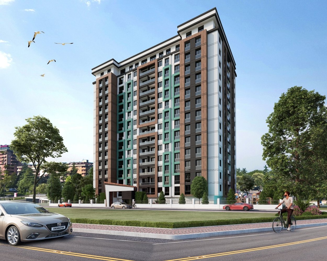 The two-block complex in Antalya Döşemealtı has features such as indoor parking area, fire pit, children’s play area, Turkish bath, sauna, charging unit for electric vehicles and fitness gym. Details