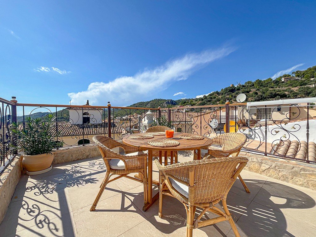 This truly charming house in the historic center of Andratx, located in the southwest of Mallorca, offers a living area of 182 m². The property was fully renovated in 2025 with a complete replacement of all utilities and is equipped with modern engineering systems. A spacious entrance hall and a living room with a dedicated workspace create a cozy atmosphere, while the separate kitchen with full appliances and dining area has direct access to a utility room. The house features 5 bright bedrooms with built-in wardrobes, 3 bathrooms and a guest toilet, an additional living room with a fireplace on the second floor, as well as two fully equipped kitchens on the ground and third floors. Marble floors with underfloor heating and air conditioning in every room ensure absolute comfort all year round, and a security system has been installed. Several terraces offer stunning views of the mountains, the historic center of Andratx, and partial sea views. Cafés, shops, restaurants, banks, pharmacies, and cultural attractions are all within walking distance. This rare property combines a historic location with modern quality, making it ideal both for permanent living and as a high-value investment with excellent rental potential. Contact Grupo Terrasun today for full details and to arrange a private viewing.
