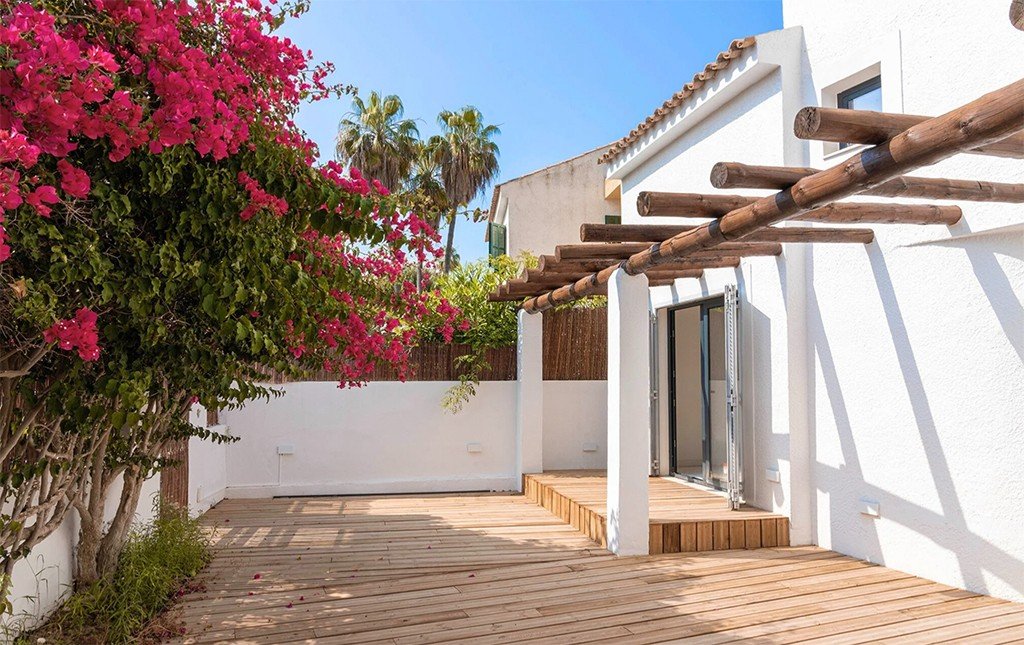 Newly renovated townhouse with a large terrace, located in the cosy area of Old Bendinat. This charming townhouse offers ideal conditions for comfortable living. The Bendinat beach is within walking distance, and the prestigious Puerto Portals marina is just a few minutes away by car. The living area is approximately 141 m², distributed over two thoughtfully designed floors: three bedrooms and three bathrooms (two of them en-suite), as well as a guest toilet. The open-plan design combines a spacious kitchen and living room with a built-in fireplace, creating a warm and inviting atmosphere. From the living room, you step out onto a private west-facing terrace with plenty of space and a small pool. The interior is finished with natural materials such as rustic stone and exposed wooden beams. Large windows throughout the house allow plenty of natural light, highlighting the bright and airy feel of the property. The townhouse has been recently renovated and offers a modern standard throughout: smart layout, ample storage space, and conveniences such as air conditioning and underfloor heating.Contact the seller