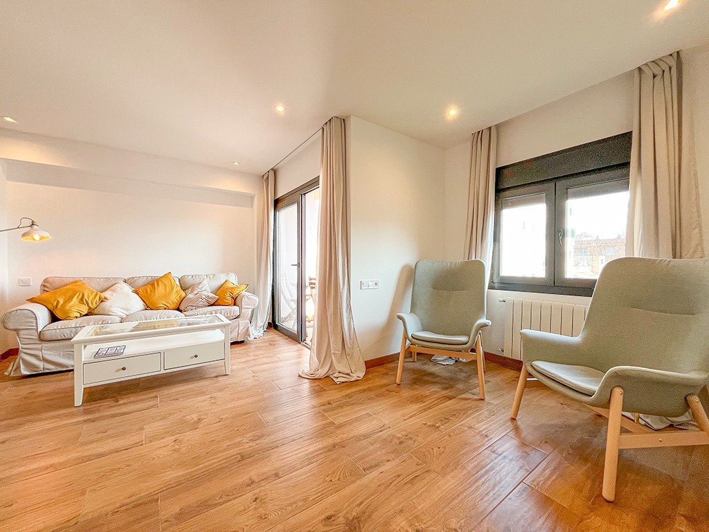 Welcome to a space where natural light meets serenity, where urban living feels effortless, and where every detail is designed for your comfort. This fully renovated 100 m² apartment is located on the fifth floor of a well-maintained building in one of Palma’s most charismatic districts — Santa Catalina. And this is more than just an apartment. It’s a lifestyle. Two spacious bedrooms filled with natural light offer privacy and tranquility. The master bedroom features an elegant en-suite bathroom and a walk-in wardrobe — your perfect retreat for relaxation and comfort. The open-plan layout seamlessly connects the living room, dining area and contemporary kitchen — ideal for gatherings, hosting dinners, or simply enjoying quiet moments under the warm Mediterranean sun. Every detail has been carefully chosen: natural textures, refined tones, clean lines. It’s all about understated elegance, quality and timeless taste. A small private terrace with open views becomes your personal sunlit corner: a morning coffee, an evening breeze, the stillness at the end of the day — moments that cannot be measured in square meters. Central heating provides year-round comfort, making this property not only beautiful but also perfectly suited for permanent living. Santa Catalina is where the morning market, trendy restaurants, seaside walks and historic streets all come together just steps from your door. Here, you’re not just living in Palma — you’re living well. This apartment is move-in ready. Perhaps now is the time to experience what it truly means to live in Palma. Contact us today for a private viewing.