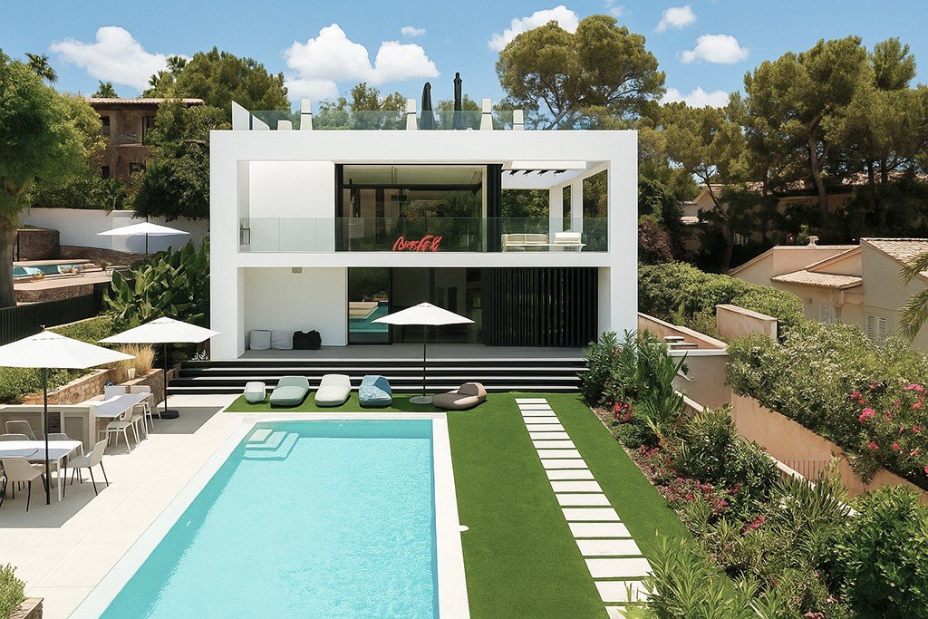 Modern villa with two swimming pools and panoramic rooftop in a prestigious area of Bendinat Located in one of Mallorca’s most exclusive coastal areas, this elegant modern villa combines refined architectural design, high standards of comfort, and stunning sea views. The property features four spacious bedrooms, each with its own en-suite bathroom and access to a private garden area, as well as an additional room on the lower level that can be converted into a gym, guest suite, or private retreat. A guest toilet is also located on the main floor. The main living level is designed to maximize sunlight and direct connection with nature. Bright corridors, panoramic windows, and direct access to the garden provide a seamless transition between indoor and outdoor living. The upper floor houses a spacious living and dining area with an open kitchen—perfect for family meals and entertaining. From this floor, a large terrace with sea views leads to the rooftop. The rooftop offers a private swimming pool with a lounge and entertaining area, from where breathtaking panoramic views of the Mediterranean and surroundings unfold. The property also includes a beautifully landscaped garden with an outdoor kitchen, a covered parking space for three cars, and an open parking area with an automatic gate. The basement includes utility and storage rooms. Location: Bendinat, Southwest Mallorca. Bendinat is one of the most prestigious residential areas on the island, located just 10 minutes from Palma. Known for its exclusive atmosphere, proximity to the Royal Golf Course and Puerto Portals marina, and stunning views of the Bay of Palma, the area features upscale villas and modern residential complexes. Within easy reach are international schools, top-tier infrastructure, and the finest beaches of the southwest coast.