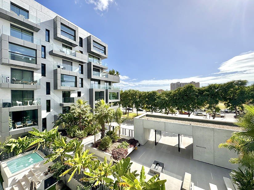 A modern apartment is available in a new prestigious residence in Palma, within walking distance of the Paseo Maritimo promenade. The apartment has an area of 95 square meters and offers a spacious living room with access to an open terrace with a beautiful view, a fully equipped open-plan kitchen, 2 bedrooms with built-in wardrobes, and 2 bathrooms. The residence features a swimming pool, sauna, gym, conference room, walking area, and concierge service. The property includes 1 parking space in the underground garage, with a personal elevator leading directly to the apartment. All necessary infrastructure is within walking distance.Contact the seller