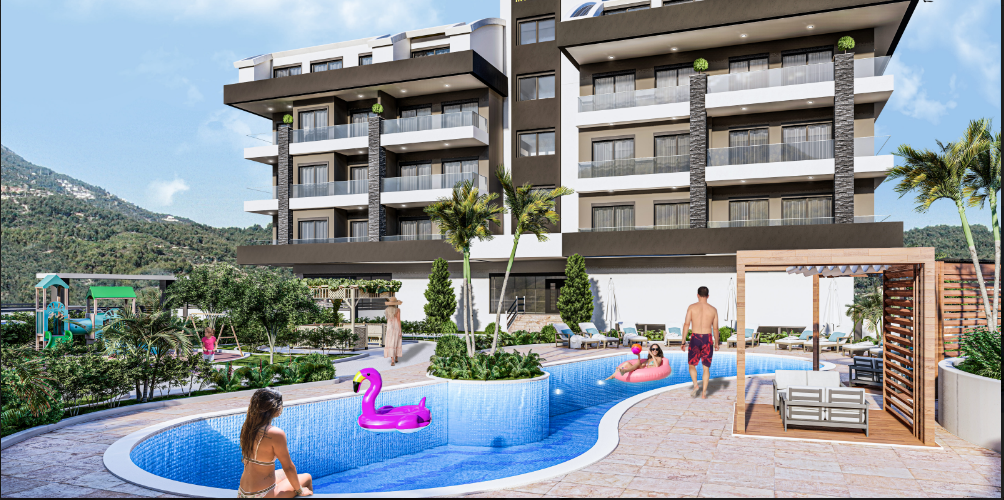 These elegant apartments, located within walking distance of Alanya Oba beach, are part of a modern project. The complex offers social facilities such as a swimming pool, sauna, steam room, and gym. Details