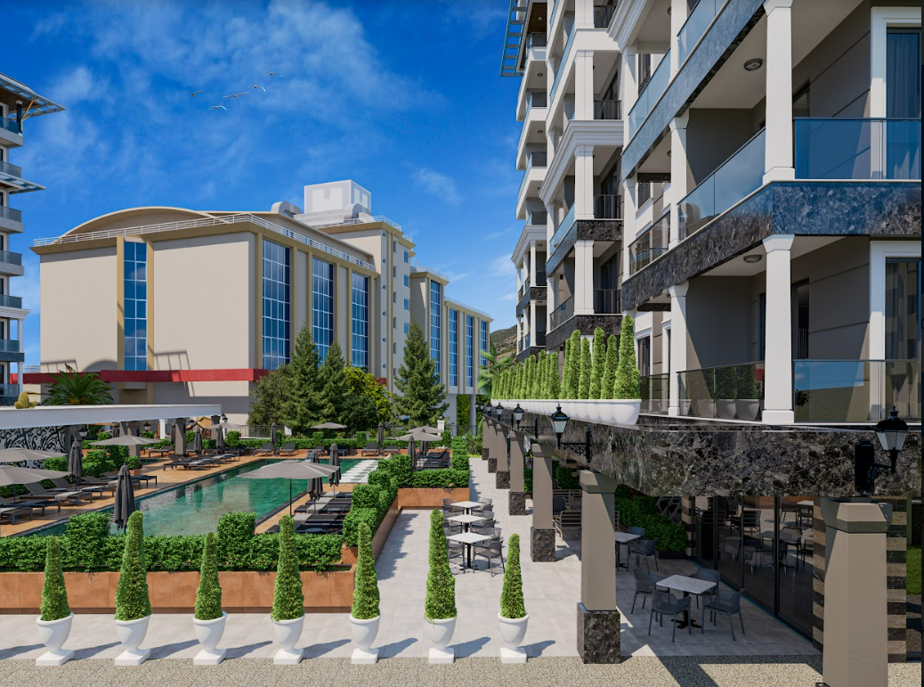 The sea-view real estate is situated in a 2-block complex in Mahmutlar, Alanya. The complex with rich amenities is within walking distance of the beach. The real estate offers easy payment plans. Details