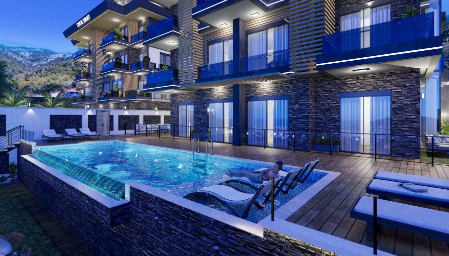 Alanya / Cikcilli – 1+1 Brand New Apartment for SaleLocated in the Cikcilli area of Alanya, this 1+1 apartment has a 58 m² living area and is brand new.