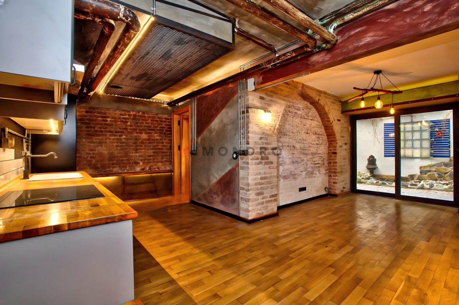 The apartment has a living space of 106 m². In total there are 3 rooms and a bathroom. All rooms can be used as a bedroom or living room. The open kitchen is set up with preinstalled appliances.
