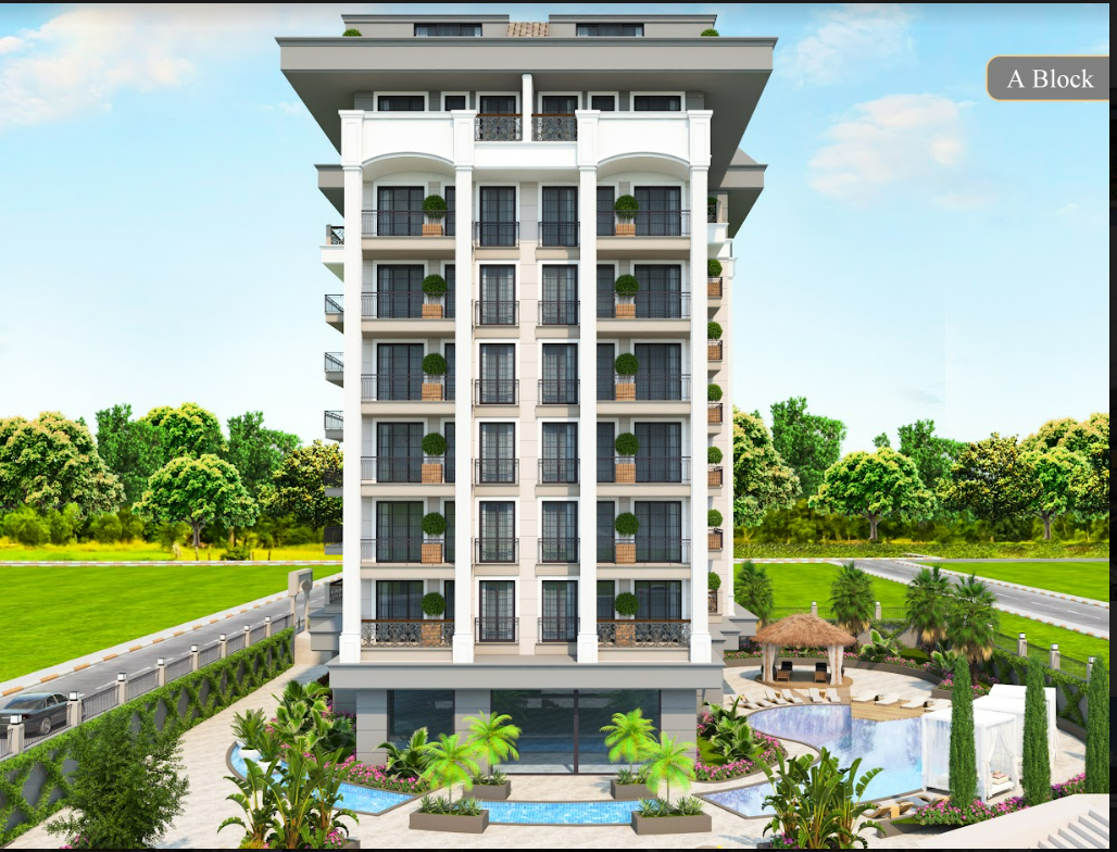 Our new project was conceived as a luxury self-contained residential resort right in the center of the city, which will include 1, 2 and 3 bedroom apartments located in two blocks, as well as an abundance of services and amenities that were previously not available in the center of Alanya.