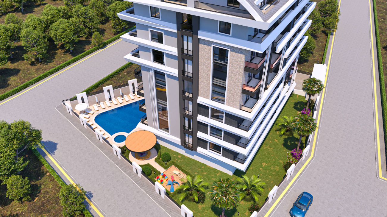 It has an ideal location: a residential development was built in the center of Alanya, just 700 meters from the coastline.