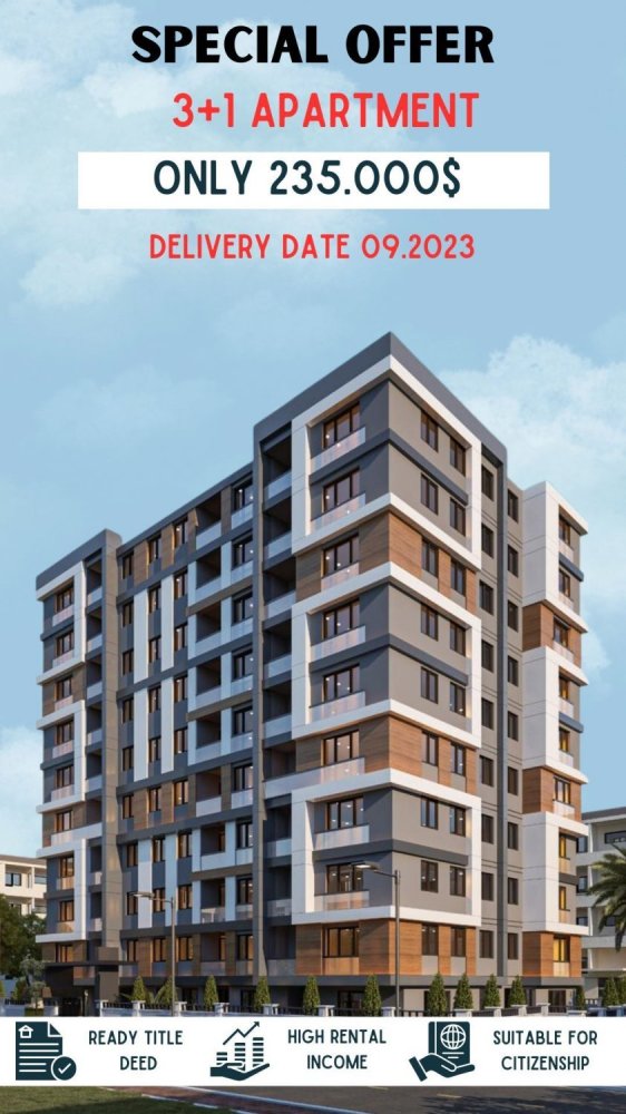 The apartments are on the main street in Bayraklı, İzmir, a lively area close to schools, parks, cafes, restaurants, green spaces, and daily amenities. Details