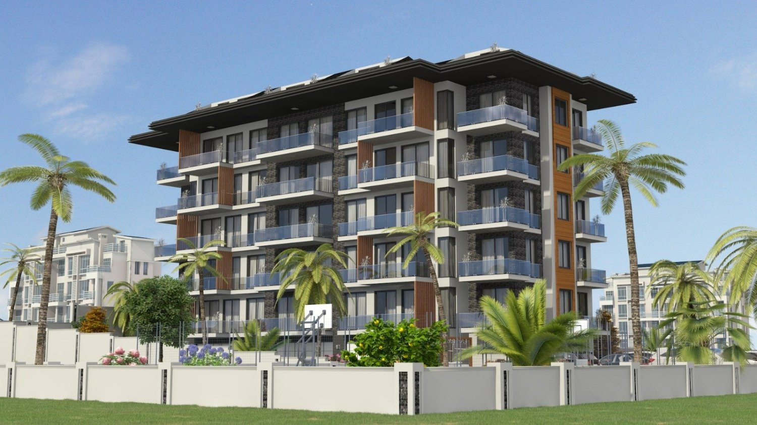 In Dinek, central Alanya, properties are for sale in a modern single-block complex with full amenities and stunning sea and city views, just a short walk from the coast. Details
