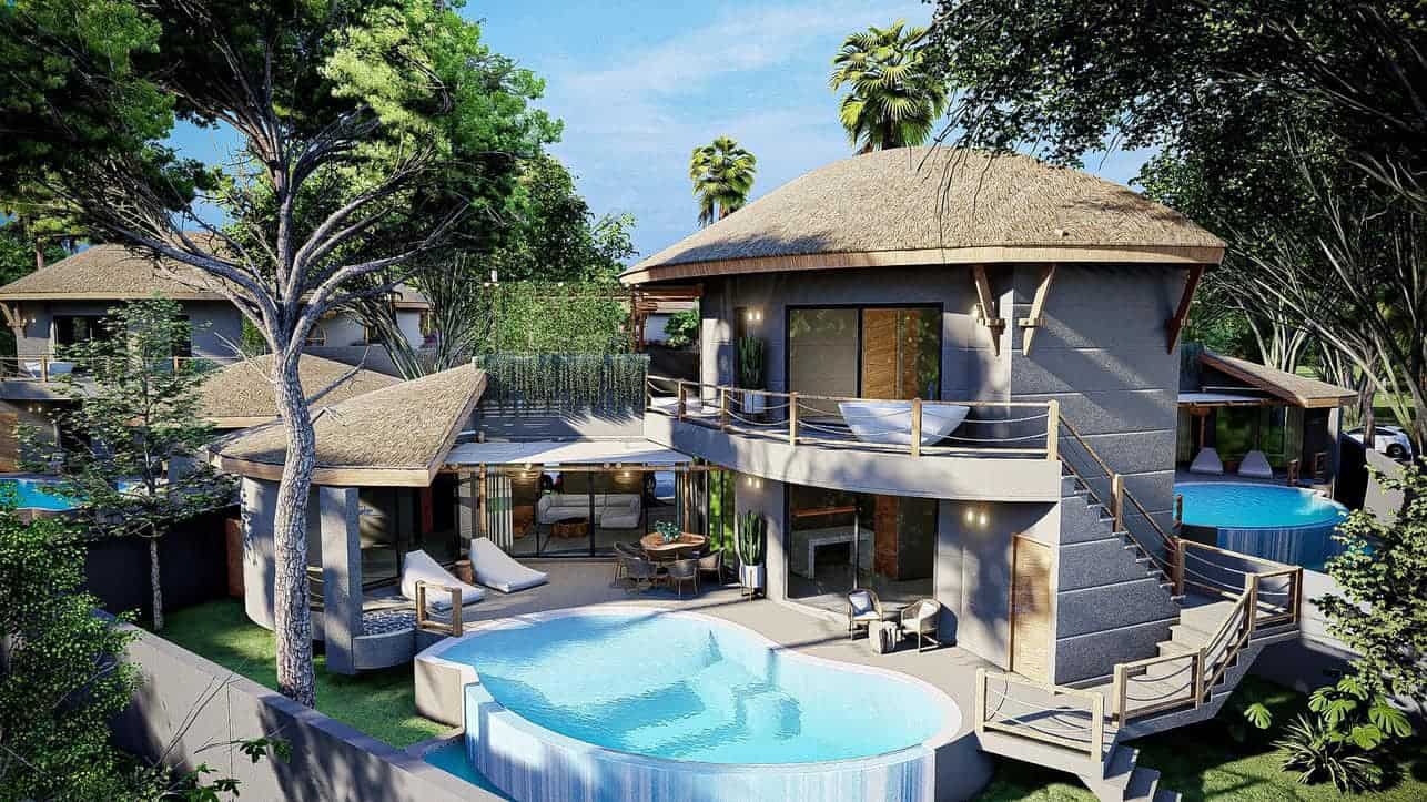 The project, built on a 1.957 m² land area in Kestel, consists of a total of 8 villas, 4 twin villas and 4 detached villas. Each villa has its own pool and garden. Details