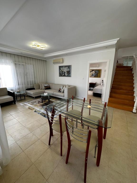 Magnificent duplex apartment located in the Tosmur area, just 150 meters from the sea! The apartments are fully furnished with quality furniture, as well as all the necessary appliances. The apartment is located on the territory of a beautiful residential complex.Duplex 3+2, 200 m2, 6th floor.
