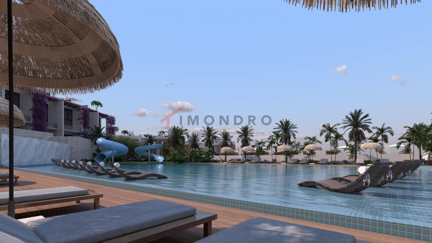 The luxe hotel concept project in North Cyprus covers a 6000 m² plot of land. The complex offers many social facilities including two outdoor swimming pools, a spa, a Turkish bath, a sauna, and a gym. Details