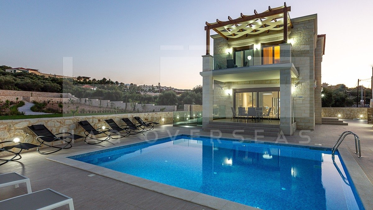 This 2 story luxury villa for sale in Almyrida, Chania, is a dream come true. it is set in the seaside village of Almyrida, in Apokoronas in Chania, just 300mtrs from the sandy organised beach. You will be able to spread out in this private 256sqms home which consists of 5 bedrooms and 6 bathrooms. Sitting on 735sqms of land, this luxurious villa includes a 38sqms pool, outdoor barbeque and kitchen area. Upon entering the first floor, you will find an open floor plan which includes the living/dining area, a fully equipped modern kitchen and a bedroom with it's own bathroom. Beautiful French doors will lead you to the outdoor pool and veranda. Climb the elegant staircase to the second floor where you will find 4spacious bedrooms, each with their own bath. The villa was built in 2017 of high quality material & natural stone and it is offered for sale fully furnished and equipped. Almyrida, Crete is a small fishing village with a lovely sandy beach and many tavernas and cafes; the village is located in the heart of Apokoronas, a region of abundant physical beauty, with many historic villages that warrant exploration and many local sites of interest. The neighbouring villages of Vamos and Kalyves offer many services including health centres, banks, and many shopping opportunities, making it perfectly suitable if you are looking to buy property for sale in Crete, Greece.