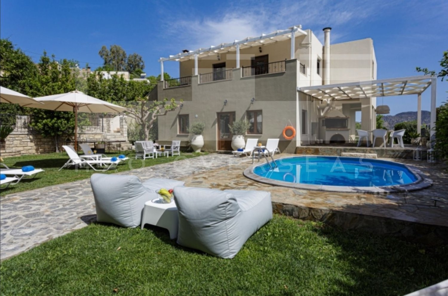 A 260m2 villa for sale in Rethymnon set in the heart of the Cretan countryside, on a plot of 659,97m2 with plenty of space for friends and family to relax and enjoy a totally hassle free holiday or for all-year round living. The residence is set over two floors and is divided in two separate apartments and 1 studio. The ground floor is comprised of an open plan kitchen with a dining area, a living room with a fire place and three large bedrooms, all with en-suite bathrooms. On the back side of the villa, there is an individual studio. An external staircase leads to the first floor which consists of an open plan kitchen with a dining and a living area, 3 large bedrooms and 1 bathroom. There is a possibility to build a 2nd bathroom in the storage room. The garden includes a 24m2 swimming pool, a covered veranda with a barbecue and outdoor dining area and a children's play area. This is an excellent opportunity for an investment as the villa is used as a holiday rental. The villa is located only 8 km away from the small town of Perama with all the facilities and amenities, 15 km from the old fishing village of Panormo and 34 km from the town of Rethymnon.Contact the seller