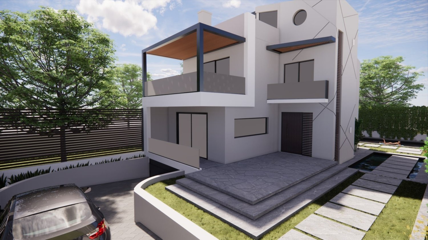 • Outdoor living space: Garden, Swimming pool, Covered terrace with fireplace, A walkway, Fishpond, Parking lot.