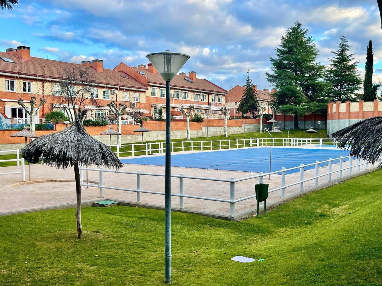 Fantastic totally refurbished townhouse located in Tres Cantos (Madrid).On the main floor there is a large bright living room with air conditioning and access to terrace and outdoor garden, fully renovated kitchen and guest toilet.On the first floor there are three bedrooms and two bathrooms. The master bedroom has air conditioning, fitted wardrobes and a large en-suite bathroom.On the first floor there is a large bright attic with velux totally diaphanous.In the basement we have ample space for garage.East and west facing.The communal areas have swimming pools, gardens, children's area and multipurpose room.The property is located a few metres from the Ciudad de Tres Cantos shopping centre, schools, pharmacies, public transport, restaurants, etc.Contact the seller