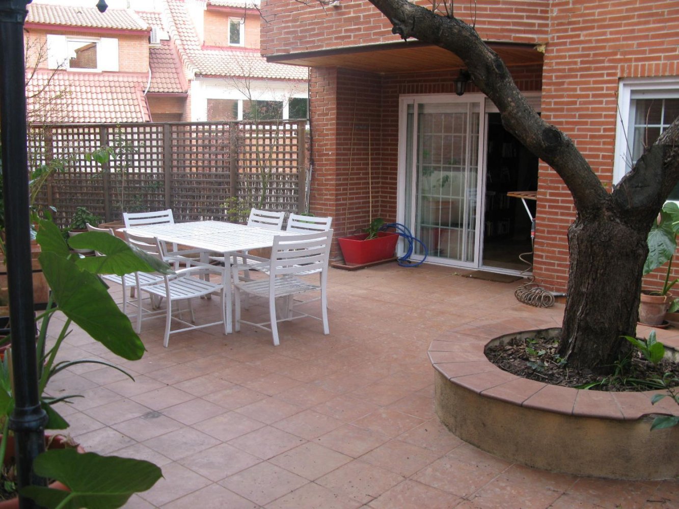Fantastic corner townhouse, located in Soto de Viñuelas, Tres Cantos (Madrid), very close to the Kings College School, and with an unbeatable orientation for this type of property given that it is exterior and this facilitates the lighting in all the rooms, at the same time as providing spectacular views with the tranquillity that characterises the area.It is a spacious and bright property with a built area of 333 square metres and a usable area of 307 square metres, distributed as follows:On the main floor, we find the hall distributor with a small wardrobe; a large living room of 40 meters with fireplace, large windows and access to a fantastic back garden; a large fully furnished kitchen with office area and pantry; and a courtesy toilet ideal for visits. From the entrance area, there is access to a second front garden ideal for spending the day outdoors with the family.On the first floor, we find the bedrooms. A large master bedroom with fireplace, dressing room, en-suite bathroom and built-in work area or office; two other bedrooms; a bathroom to service them.The upper floor has a multipurpose room with gym; a glazed terrace that allows its use in any season of the year; and a bedroom with access to an open terrace of approximately 15 metres; and a bathroom.The basement has a garage with space for two vehicles and a laundry or storage room.In addition, the characteristics that make this property stand out are that it has individual natural gas heating, armoured door, pre-installation of communications, carpentry finished in oak and marble and parquet floors.Don't miss the opportunity to live in this wonderful semi-detached house, located in a privileged and private area with a swimming pool and garden.