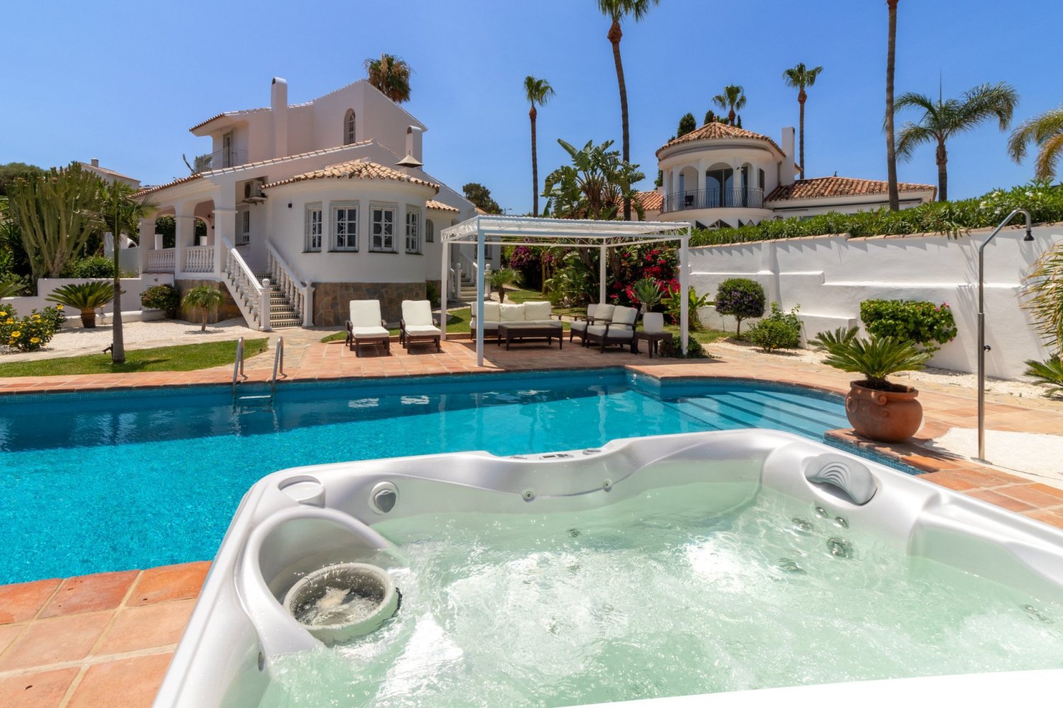 This beautiful 4 level Andalusian style villa will take your breath away with its stunning mountains and brilliant views of the Mediterranean Sea! The property is located in one of the most exclusive areas of Estepona and is within walking distance of the famous golf course. Valle Romano golf and restaurants.Living here, you have all the amenities, shopping areas, schools, hospitals and some of the best sandy beaches in Europe. This incredible villa is a haven of pure comfort and exudes tranquility and isolation, which allows you to enjoy maximum relaxation. Impeccably maintained, it has a stunning tropical garden surrounding the property. Upon leaving, you will be greeted by a huge 50 m2 private pool, perfect for swimming and lounging in the sun. And if that's not enough, there is also a luxurious jacuzzi for you to soak in.