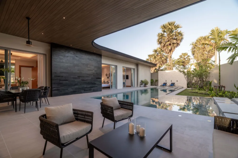 The project consists of only 9 pool villas, each villa includes built-in furniture, fully equipped kitchen, rooftop solar system, high efficiency inverter air conditioners, swimming pools with jacuzzi, automatic gates and several storage rooms. The sizes of land plots vary from 632 sq.m. up to 1065 sq.m.The project is located in a popular area with developed infrastructure, 10 minutes from Boat Avenue and 12 minutes from Bang Tao Beach, Layan. Large grocery stores are 15 minutes away. HeadStart International School is 15 minutes away by car.