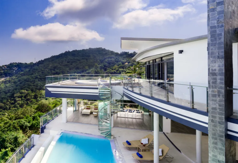This magnificent property “Villa Seawadee” is perched on the side of the mountain in the upmarket Chaweng Noi area of Koh Samui. Seawadees’ unique position commands the most spectacular 180 degree views which capture the beautiful tropical surroundings & turquoise waters below. The luxury villa is ideally designed for experiencing the enchanting ocean views and breezes that make Koh Samui one of the most highly coveted destinations in Southeast Asia.The villa itself is just 10 minutes from Chaweng Beach, 15 minutes to Central Festival Shopping Mall.