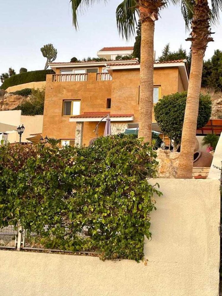 This villa is located just a few minutes drive from Paphos, the Aspire private English School, Lidl supermarket with panoramic views of the Mediterranean coast and a ship on the rocks. The villa is decorated with marble, which gives it a delightful look. It is located on a hill.The plot has 4 levels, on different levels with a well-maintained garden and enough space to accommodate an Infinity pool if necessary. The house has three floors. The layout of the first floor consists of a living room/recreation areas, open-plan kitchens with a beautifully decorated bar counter decorated with an illuminated onyx composition. There is also a guest toilet and a separate laundry/utility room on this level.