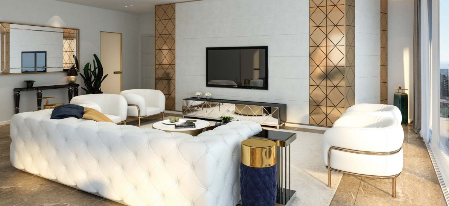 Levels above the office floors comprise a limited number of elegant apartments arranged to give views of the park's treetop canopy to the east and over the old town to the west. Some of Limassol's more notable landmarks are beyond. Each floor comprises two apartments and owners have the opportunity to select apartments as either full-floor, or half-floor configured to give either sea views to the east or city views to the west.
