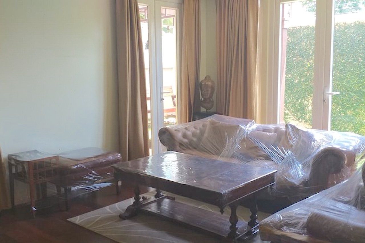 The home has a mature lush private garden and an enclosed two-car garage with a door. There is also a laundry room and a separate maids quarters.