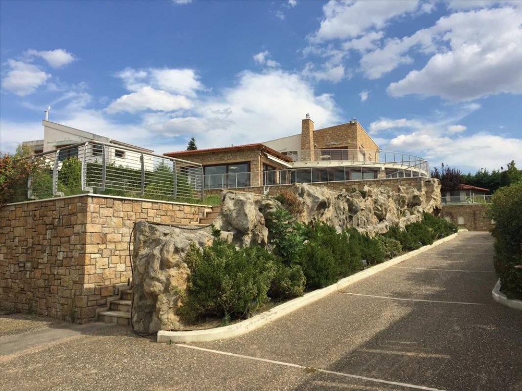 For sale 3-storey villa of 740 sq.meters in Thessaloniki. Ground floor consists of 2 bedrooms, living room with kitchen, one shower WC, one gym. 1st floor consists of living room with kitchen, one shower WC. 2nd floor consists of 3 bedrooms, living room, 2 bathrooms, one office, one dressing room. A magnificent view of the city, the sea, the mountain, the forest opens up from the windows. There are: a fireplace, air conditioning, heating, a barbecue area. The owners will be leaving the furniture with the sale. There is an alarm system installed. Extras included with the property: parking space, garden, garage. The property boasts a swimming pool of private use.Contact the seller