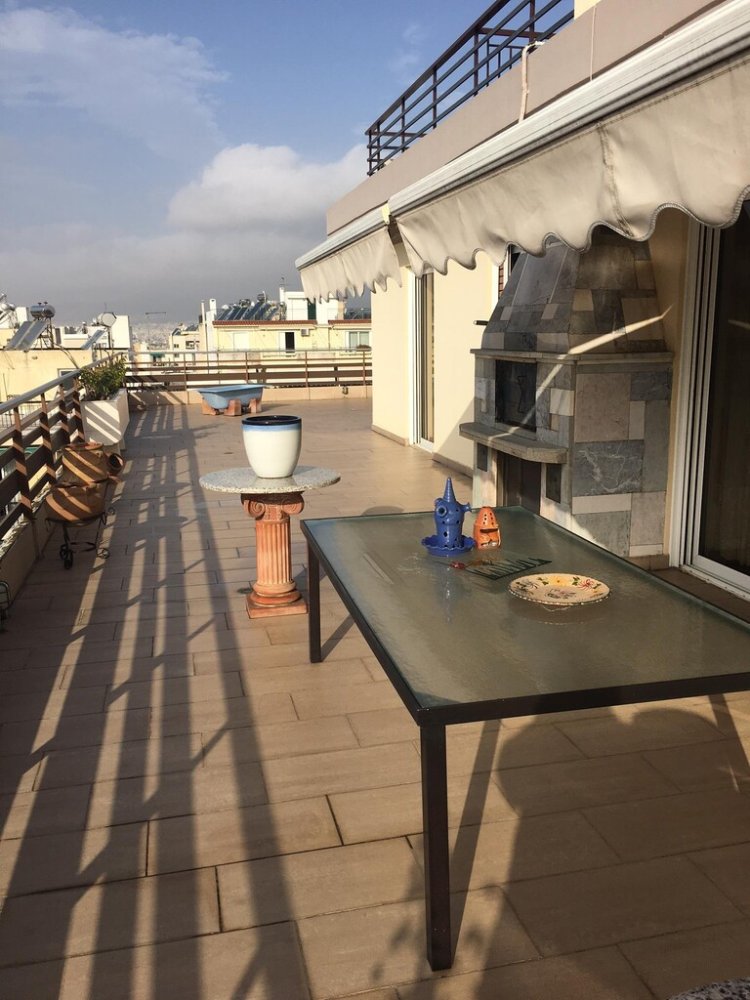 For sale apartment of 200 sq.meters in Athens. The apartment is situated on the 4th floor. It consists of 3 bedrooms, 2 living rooms, one kitchen, 2 bathrooms, one WC, one dressing room.Flat has front layout. The property offers a roof garden. A magnificent view of the city, the mountain opens up from the windows. There are: a fireplace, air conditioning, awnings, heating. The owners will be leaving the furniture with the sale. Building has an elevator. Extras included with the property: garage.