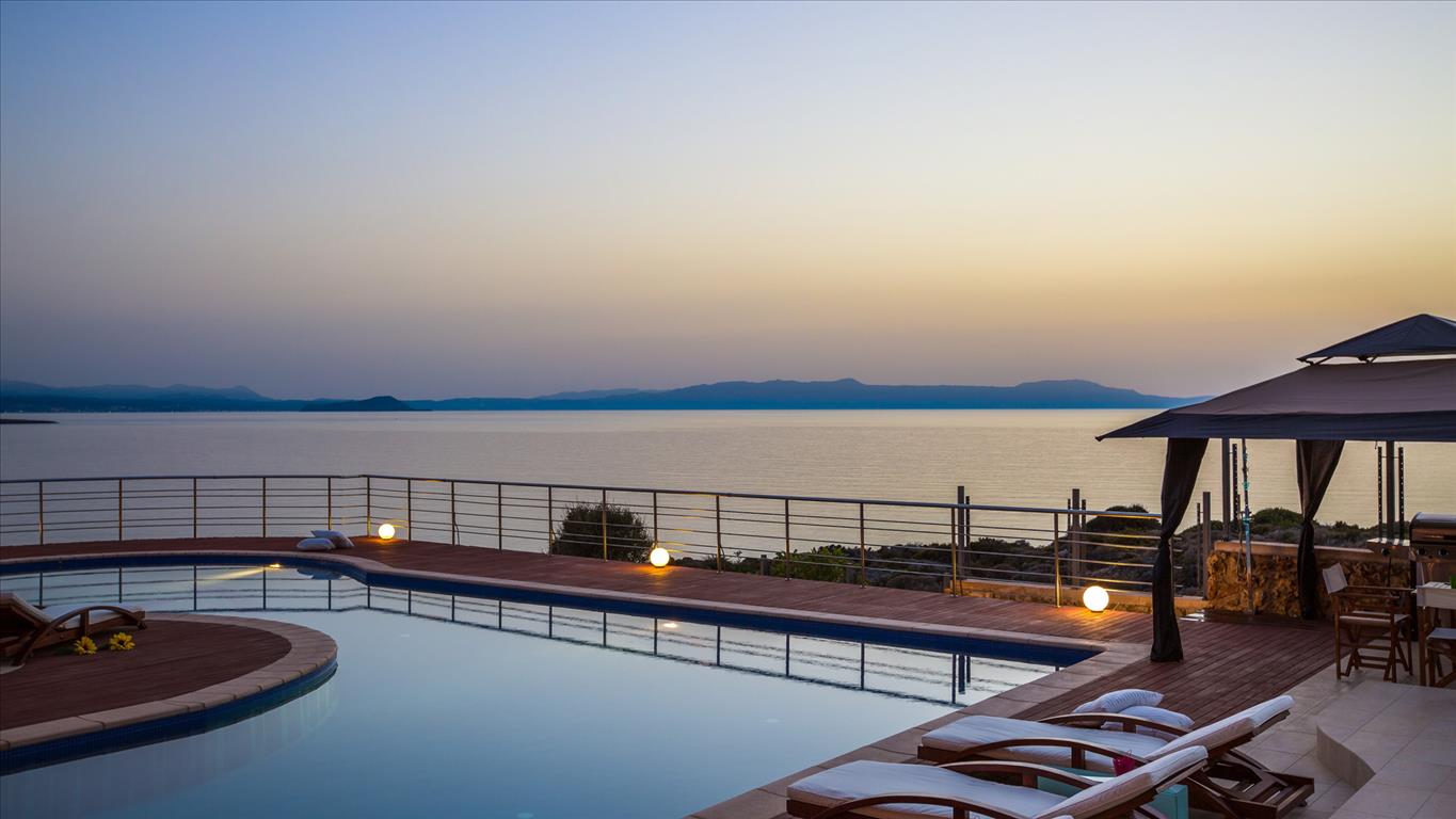 For sale villa of 465 sq.meters in Crete.A magnificent view of the sea, the forest opens up from the windows. There are: solar panels for water heating, a fireplace, air conditioning, awnings, heating, a barbecue area. The owners will be leaving the furniture with the sale. Extras included with the property: parking space, garden. The property boasts a swimming pool of private use.