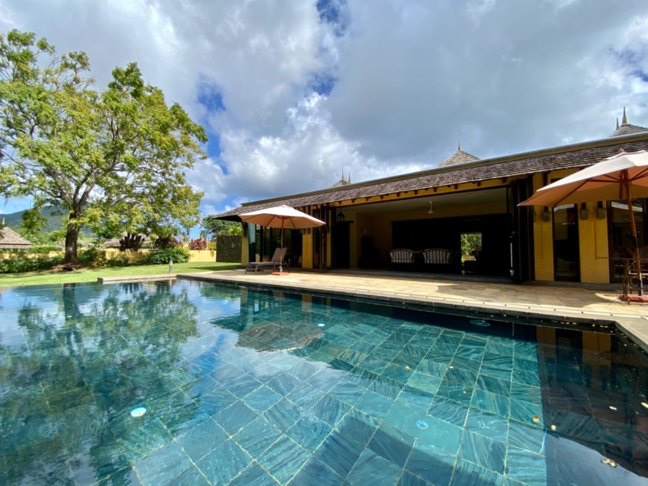 Prestigious villa fully furnished with taste and style within an integrated development program, in Tamarin ... It includes 3 ensuite bedroom and another room converted into an office, and spacious rooms, fitted kitchen and utility room, closed garage and covered veranda with direct view on the overflowing swimming pool ... Bonus point: a pavilion of 47m2 with en-suite bedroom.Situated on the beautiful west coast of Mauritius, the Tamarina Golf Estate boasts a magnificent 18-hole Championship golf course on a 206-hectare estate, a restaurant, a beach hotel & a beach club. 119 exclusive villas are magnificently designed with a combined use space, light, wood, stone and colonial shingles in optimal proportion for aesthetic impact.