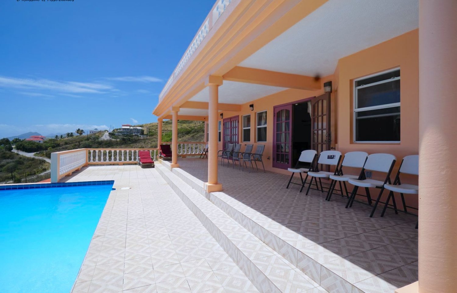 A private master suite with French doors opens out to a large veranda with breathtaking views of the Caribbean Sea. The spacious master bath has a shower, a bidet and a double Jaccuzzi tub.