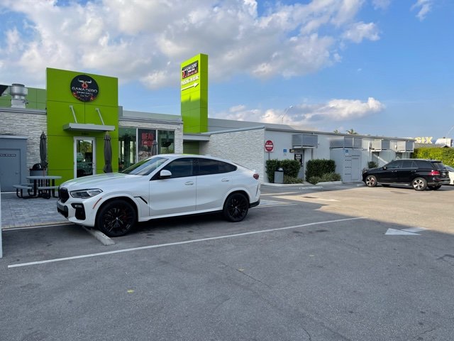 impact glass storefronts, outside seating area, new parking lot with 52 spaces, and all exterior led lighting.