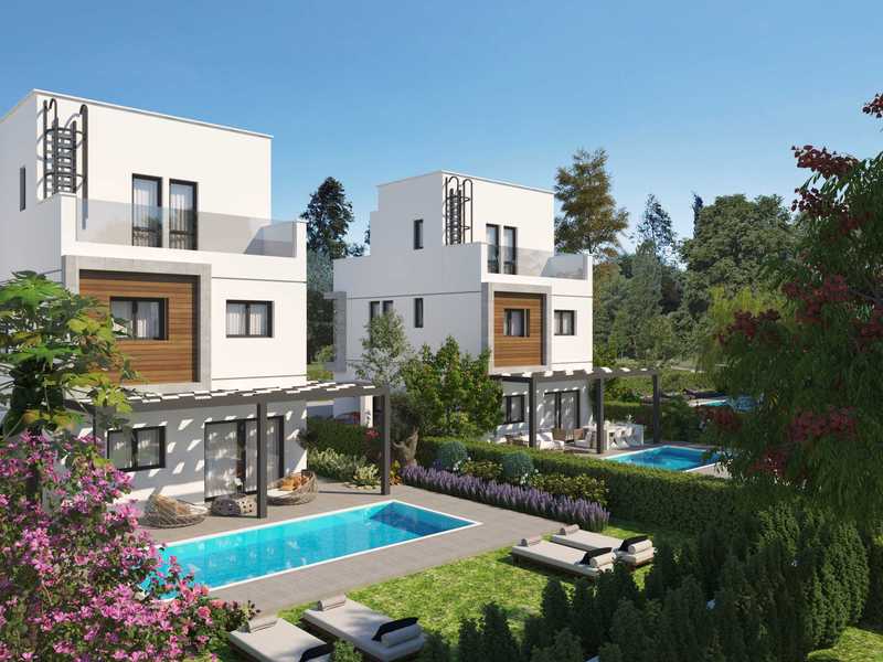 A complex of 18 villas under construction in a quiet area of Agios Tychonas, each villa has a swimming pool and a garden, beautiful view of the Mediterranean sea, easy access to amenities, beaches, hotels and restaurants.