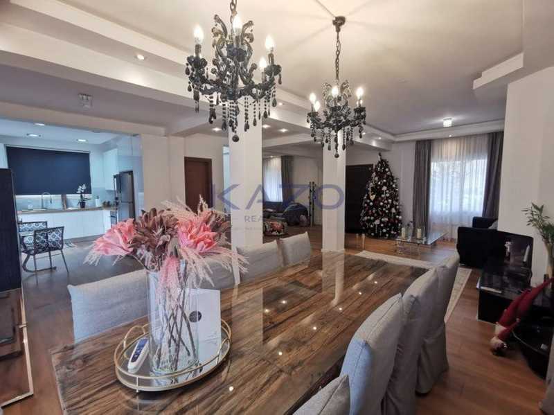 The property consists of four spacious bedrooms, three bathrooms, an open plan kitchen, dining, and living room area, a beautiful veranda (covered and uncovered), a 100 square meters basement area, and a garden with a private swimming pool.