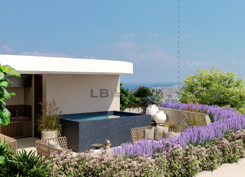 The property is a premium 2 Bedroom contemporary Penthouse with spacious roof garden, located on the 3rd floor of a three-storey building in the heart of Limassol.The apartment measures about 86sqm internal area, 11sqm covered veranda, 18sqm uncovered veranda and 56sqm roof garden.