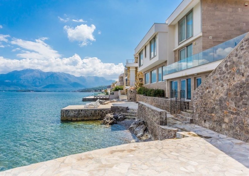 Spacious waterfront villa with mooring in Krasici, Lustica.The villa consists of 5 bedrooms, 2 kitchens, 3 bathrooms. It features a boat mooring, 2 parking places, BBQ on the terrace and direct beach access. Each room is designed with floor-to-ceiling windows, offering breathtaking sea views. There is also a studio within the villa that can be accessed through a separate entrance.