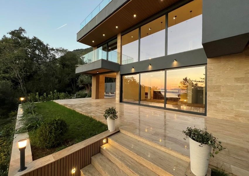 A new modern family villa with three bedrooms, terraces with panoramic sea views and with a rooftop pool is located in the town of Kavac on the coast of the Tivat Bay. Kavac - a unique place with its microclimate and beautiful nature - is located on a hill above the Tivat airport, its south-western orientation provides sunshine all year round.