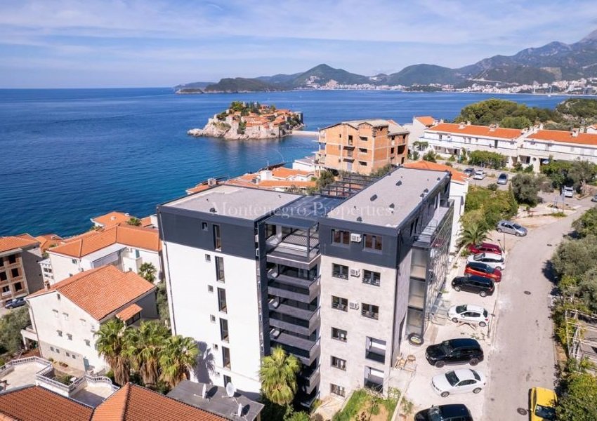 Newly built apartments in Sveti Stefan, only 100 m from the beach. Set in a quiet location, surrounded by greenery, with amazing views over Sveti Stefan island and the sea. This complex of apartments has a unique concept that combines luxury and homelike warmth. Open concept living space with abundant light intake and amazing views of the crystal clear Adriatic Sea visible through floor-to-ceiling sliding glass doors that lead to the outdoor balconies.Available units: