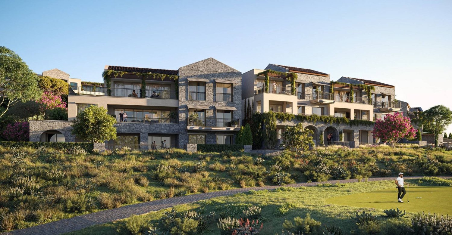 'Botanika' 3-bedroom spacious apartments overlooking Golf holes 1 and 2 and the Adriatic sea. They consist of open-plan living and dining areas, a master bedroom with a bathroom, two bedrooms, a bathroom, a toilet, and a beautiful terrace with a magnificent sea view. Some of the apartments have a laundry.