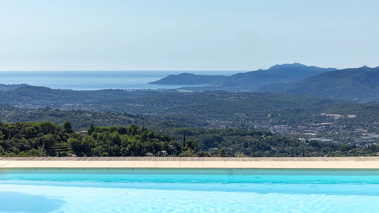 Splendid property located in a dominant position with sea views and the entire coastline of the Cote d'Azur as well as the mountains. Located on a large terraced plot of land of approximately 5700 sqm decorated with around sixty classified olive trees. You will be captivated by the panorama which extends from Esterel to Cap d'Antibes, with a view of the islands. This exceptional property of approximately 250 sqm consists of a large living room opening onto the exterior space (thus benefiting from the panoramic view), a dining room, an equipped and furnished American kitchen, 1 spacious bedroom with a view on the swimming pool area, a large office which can also be used as a bedroom, laundry room, dressing room and bathroom. Upstairs, 2 bedrooms with a bathroom and WC. A very large master suite with its bathroom / shower room, WC, enjoying a magical view of the sea. This magnificent property also has a winter and summer patio with a bioclimatic pergola as well as a sliding curtain allowing you to close the room. A very large garage completes this property. Very beautiful swimming pool area, with wooden terrace and pergola, a very beautiful covered terrace with summer kitchen is added to all of these services. Underfloor heating, reversible air conditioning, double garage, home automation.