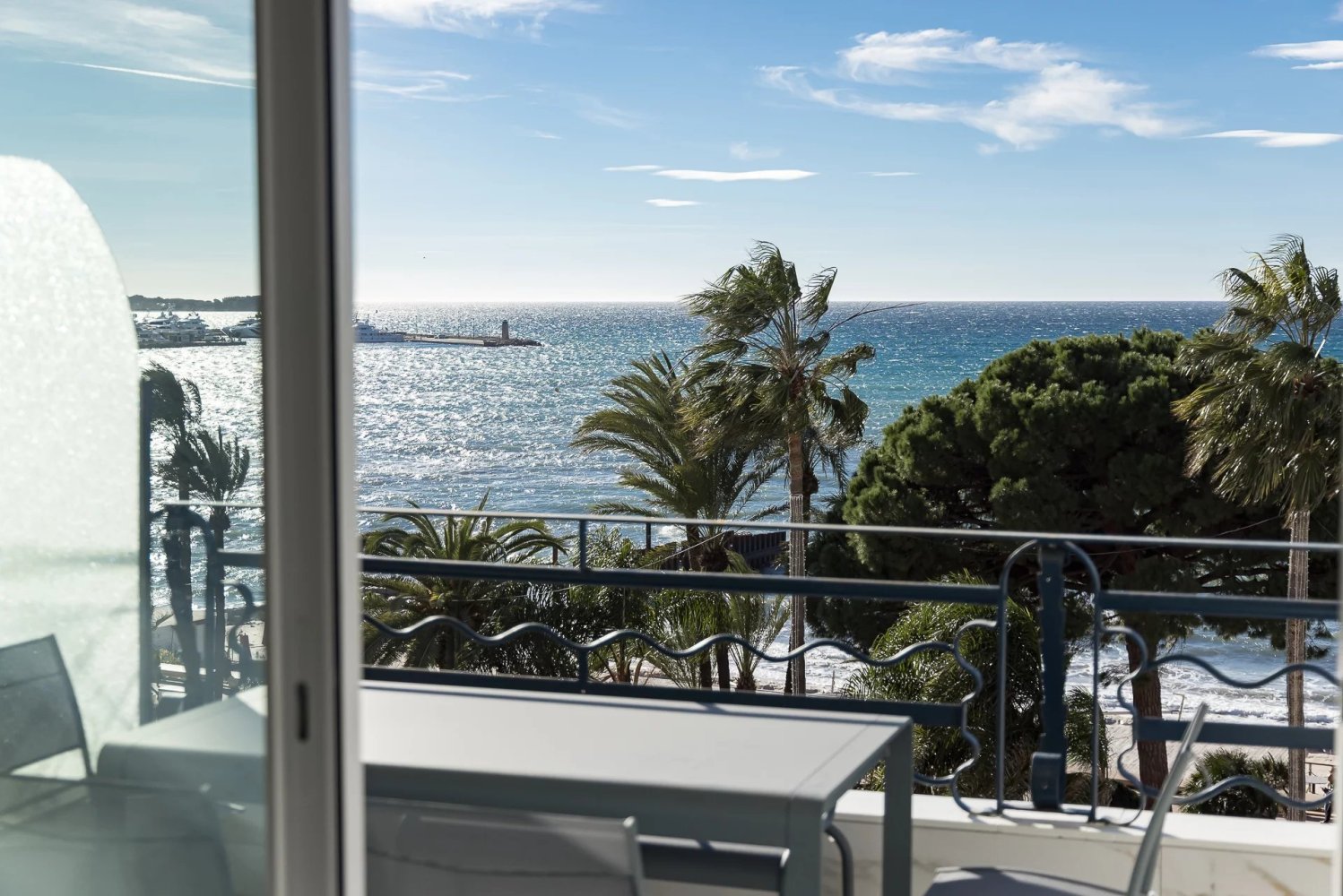 Cannes Croisette, 3-room flat located on the first floor of a residence in the heart of the Croisette, offering breathtaking views over the Bay of Cannes and the Lerins islands. This flat has a double aspect and a floor area of around 80 m2.